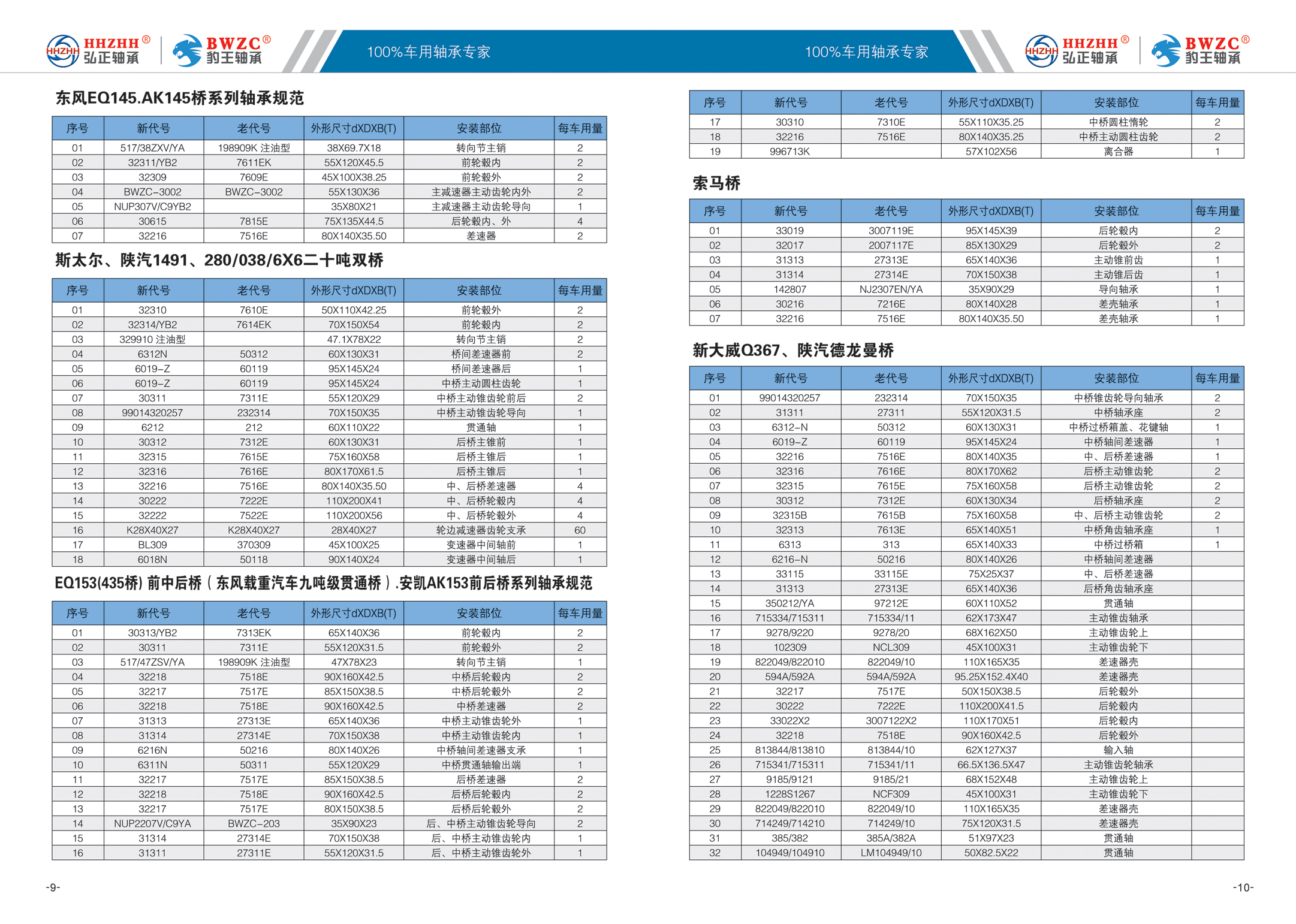 圓柱滾子與滾道呈線接觸,徑向負荷能力大,即適用于承受重負荷與沖擊負荷,也適用于高速旋轉 N型及NU型可軸向移動,能適應因熱膨脹或安裝誤差引起的軸與外殼相對位置的變化,最適應用作自由端軸承NJ型及NF型可承受一定程度的單向軸向負荷,NH型及NUP型可承受一定程度的雙向軸向負荷內圈或外圈可分離,便于裝拆NNU型及NN型抗徑向負荷的剛性強,大多用于機床主軸